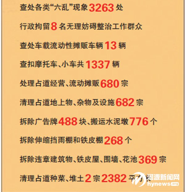 此次行動連平縣以開展“城市品位提升年”活動為契機,以治臟、治亂、治差為主要內容,將主要對連平縣城南山大道、連平大道、東園大道、新城大道、人民路、市政廣場周邊、步行街、西街、南街、東街、十八米大街、青菜街、東河西路、西門路、保險路等主要街道的“六亂”現象進行整治。11 月15 日,連平縣環境綜合整治工作正式進入集中整治階段,執法工作人員分成多個小組深入到縣城各個街道,對 “六亂”現象進行整治清理。截至12 月12 日,連平縣城經過近一個月的整治后,街道寬敞了、路面整潔了、市場買賣有序了,垃圾圍城、占道經營、違法搭建等城市環境的“痼疾頑癥”都被強有力的整治“龍卷風”刮走了。