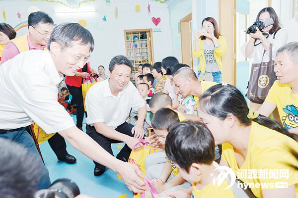 市委書記張文、省殘聯(lián)理事長張永安到市殘疾人康復(fù)中心看望殘疾兒童。