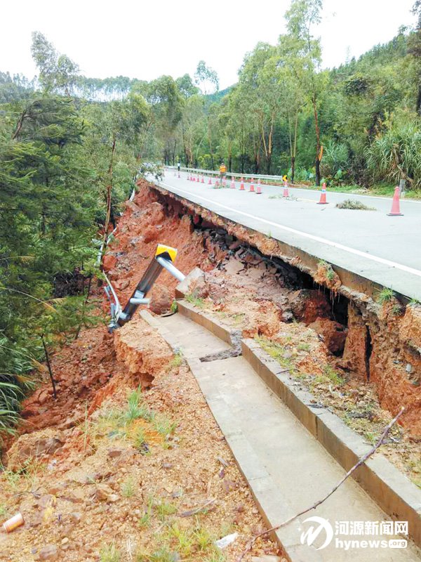 S120線紫金好義段發生山體滑坡,惠州路段路基下塌。