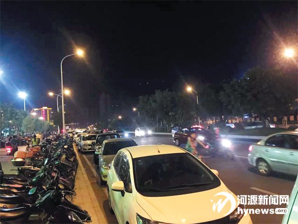 永和路客家文化公園路段,這里也是群眾反映違停較為嚴(yán)重的路段。前天晚上7 時許,記者沿著公園正門往兒童公園方向走,發(fā)現(xiàn)雖然在相隔500米左右的路段有兩個停車場,但一些車主還是圖方便,將車停在路邊。在這些路段,還有一些經(jīng)營飲料、水果和玩具的商販,也將車停在路邊,行人只能走在靠近路中央的地方,綠燈一亮車流從行人身邊疾馳而過,十分危險。