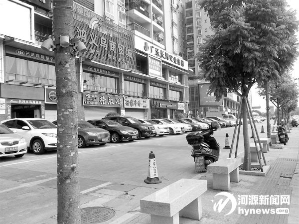 沿江路,有些綠化樹的支架已經不翼而飛。