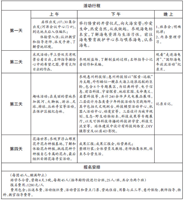 2017寒假“海龜灣”游學科普冬令營(惠州站)活動安排