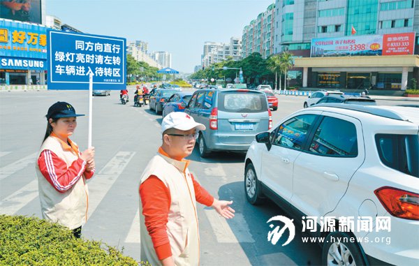 為有效提高市區十字路口的通行效率,緩解交通擁堵,市區一些路口設置了車輛左轉待轉區。由于該類標線在市區第一次啟用,不少車主尚不清楚如何運用,為讓更多車主學會使用左轉待轉區,昨日,市交警支隊聯合市紅十字會志愿者愛心服務隊的志愿者走上街頭,引導車主正確行駛。