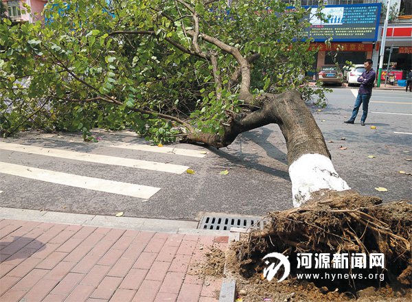 昨日上午11 時20 分許,市區(qū)老城公園路口一棵路邊大樹突然連根拔起倒下,所幸未傷及路人。記者看到,這棵大樹直徑三四十公分粗,樹根根部扎土不深。據(jù)了解,近年來,公園路路段路邊樹木倒下已發(fā)生過數(shù)次,有市民建議相關部門對該路段大樹進行裁枝處理,以免傷及路人。