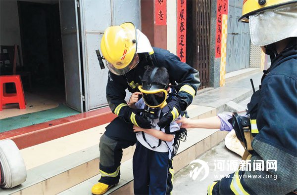 到達現場后,消防人員得知,起火的原因是戶主在做飯時,連接煤氣罐的軟管突然著火,戶主見此狀況立即撤離了廚房,但還有一名10 歲的孩童因身處四樓來不及撤離。得知這一緊急情況后,龍川消防中隊指揮員立即帶領消防官兵進行撲火救援,最終將小孩平安救出。