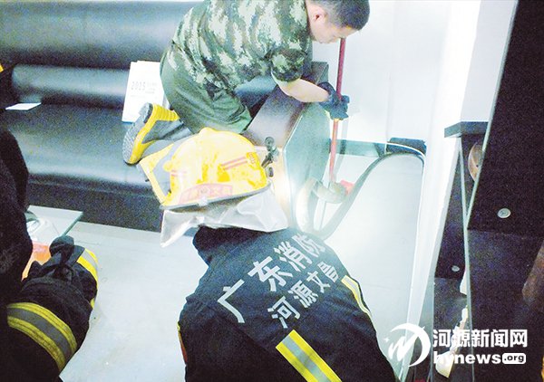 5 月16 日13 時許,源城區文昌消防中隊接到報警稱,市區雅居樂南門一家商店內發現一條大蛇,店內人員安全受到威脅。接警后,該中隊迅速出動一臺搶險救援車以及5 名指戰員趕赴現場。