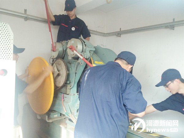 今年6 月份,是全國第15 個安全生產月。為提高電梯維保單位和使用單位處置電梯突發故障的能力,規范應急處置程序和措施,提高市民乘梯的安全意識,昨日,市質監局組織開展了電梯應急救援演練。演練模擬東江首府小區6 位業主在乘坐電梯時,電梯突發故障,業主被困于轎廂內,通過緊急報警對講系統向物業監控室求救。相關工作人員接到情況后,緊急展開救援。整個救援過程歷時14 分鐘,演練取得圓滿成功。圖為救援人員在用人力盤車的方式解救被困人員。