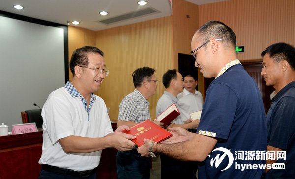 昨日下午,市委市政府在河源恐龍博物館召開表彰大會,對第十五批在查找、發現和保護恐龍化石中的3 個有功單位和57 人次有功人員進行表彰獎勵,合計獎金20 萬元。市委常委、宣傳部長吳善平出席會議并為獲表彰單位和人員頒獎(如圖)。