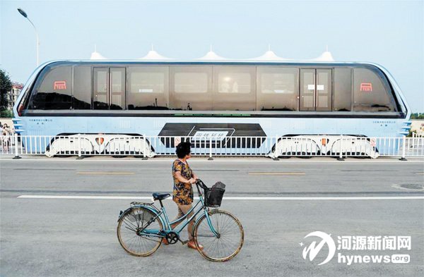 一位市民從正在進行路面測試的巴鐵1 號試驗車旁經過。 8 月2 日,我國自行設計研制、全面擁有自主知識產權的“空中巴士”——巴鐵1 號試驗車,在河北秦皇島北戴河區開始啟動路面綜合試驗,包括剎車距離、摩擦系數、耗電等,檢驗車和路、人和車的關系。