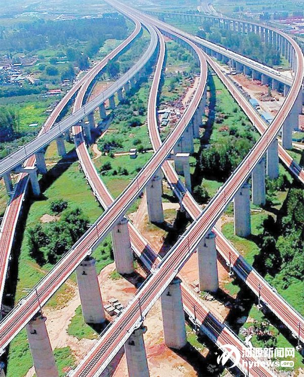 鄭州東站附近一處高鐵交會的立體樞紐“。坐上高鐵去北京,一路都是美麗風景,去圓我的中國夢……”幾年前青年歌手徐子崴的一首《坐上高鐵去北京》,唱出了“高鐵中國”的青春與夢想。隨著9月10日6點31分G1908次高鐵列車從鄭州東站發出,鄭徐高鐵正式開通運營,標志著中國高鐵運營里程突破2萬公里。從2008年的京津城際到鄭徐高鐵,8年間,我國高鐵從無到有,再到如今的“公交化”密集運營,高鐵正改變著人們生活。
