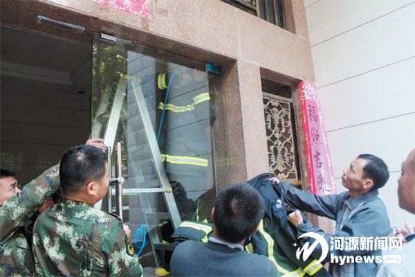 12 月2 日9 時50 分,東源縣霸王花新邨小區一名小男孩手指被夾在玻璃門上,請求救助。東源消防中隊官兵接報后迅速趕到現場,只見一名老奶奶抱著一名小男孩蹲在玻璃門前,而小男孩的左手手指則被卡在玻璃門縫里不能動彈,而且手指已經充血腫脹,發紫發黑。原來,小男孩因貪玩不慎被玻璃門夾住手,無法拔出。消防官兵見狀后,一邊安慰小男孩,一邊利用氣動切割刀對玻璃門的門軸進行擴張,擴大救援空間。經過10 分鐘的努力,最終讓小孩的手重獲自由。