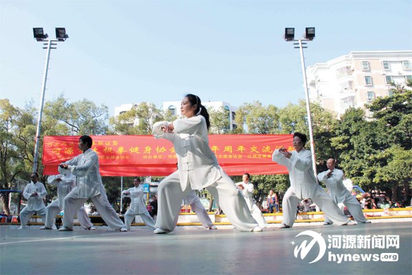 近日,河源市太極拳健身協(xié)會與江西定南縣太極拳健身協(xié)會舉行交流聯(lián)誼會暨周年活動。活動中,河贛兩地太極拳協(xié)會的成員共同表演了豐富多彩的太極拳(劍)、健身氣功等節(jié)目,并將太極拳講究松靜安舒、周身協(xié)調(diào),通暢氣血、陰陽平衡,以意領(lǐng)行,導(dǎo)引經(jīng)絡(luò),氣貫全身,神形合一的意境展示得淋漓盡致。通過此次聯(lián)誼交流活動,兩地不僅切磋了技藝,增進(jìn)了友誼,更豐富了兩地居民的精神文化生活。