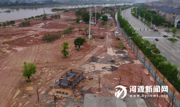 東江灣公園正在建設中。公園的設計理念運用了“海綿城市”建設技術。陳仕平 攝