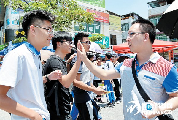 在學(xué)生步入考場前,來自田家炳中學(xué)的老師與他們一一擊掌鼓勵(lì)!昨天上午,2016年高考正式開鑼,全市兩萬多名學(xué)子步入考場接受檢閱。由于多個(gè)政策調(diào)整,今年廣東高考頗受關(guān)注:結(jié)束12年自主命題歷史,回歸全國卷;首次使用身份識別系統(tǒng)防止替考……在高考首日,市區(qū)兩個(gè)考點(diǎn)秩序井然,多部門齊心協(xié)力為高考保駕護(hù)航,愛心司機(jī)和志愿者們一如既往熱心服務(wù)考生,營造了良好的考試環(huán)境。