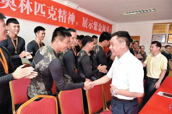 紫金縣委書記劉振林率隊慰問龍舟隊隊員。