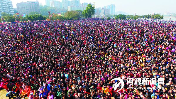 ▲大年初一,數(shù)萬人聚集在龍川文化廣場看表演,人山人海甚為壯觀。