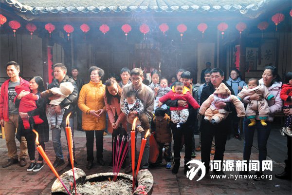 連平縣忠信鎮(zhèn)司前村吳氏祠堂里,去年喜添男丁的村民帶著小孩前來祭拜祖先。