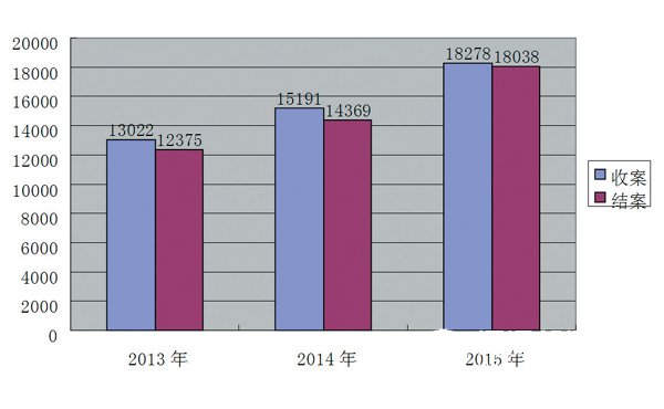 一、全市法院三年來收結(jié)案增長情況(單位:件)