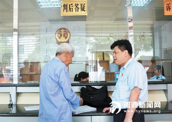 立案登記制改革實(shí)施首日,市中院院長肖文浩到立案窗口向群眾了解立案情況。