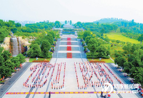 600 名身上斜披著大紅綬帶的大學生齊聚客家文化公園,航拍“創(chuàng)園”兩字時,就吸引了眾多早起晨練的市民的視線。