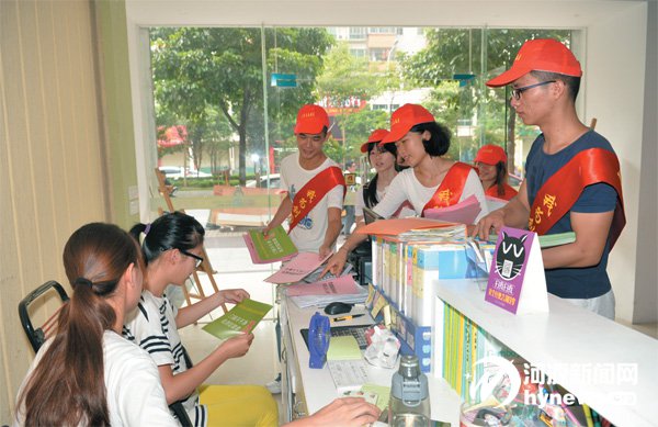 大學生志愿者在街頭向市民發(fā)放“創(chuàng)園”宣傳單。