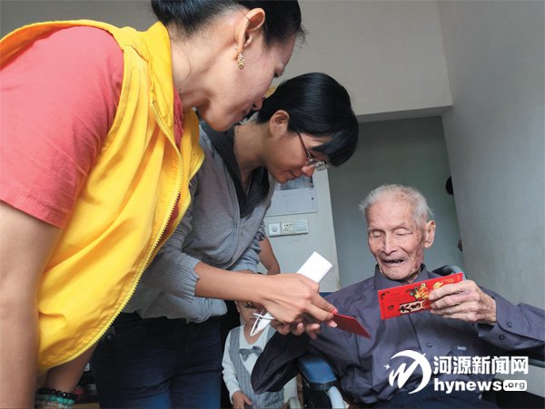 重陽佳節,河源關愛抗戰老兵志愿者團隊及愛心人士前往東源燈塔鎮為91 周歲的抗戰老兵楊立中爺爺祝壽。通訊員 張偉才 攝