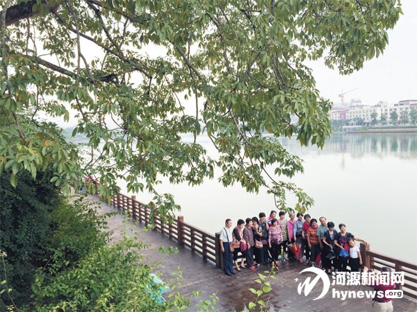 新豐江公園景色美,引來不少市民合影留念。