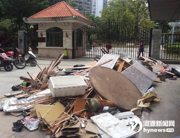 小區門口堆滿建筑垃圾影響居民生活環境 原是某業主持續裝修導致