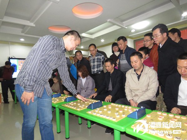 據(jù)了解,本次象棋公開賽分為成年組、少年組(10 至16 周歲)、兒童組(10 周歲以下)三個組別。賽事不但吸引了我省各市名手參賽,還吸引了遼寧、浙江、湖南、湖北、河南、河北、江西等省份的名將前來參賽,參賽人員共99人。他們齊聚河源,在這里用棋藝一決高下。19日,象棋特級大師莊玉庭先生也受邀來到比賽現(xiàn)場,與現(xiàn)場的象棋愛好者們進(jìn)行1對10車輪戰(zhàn)表演賽,由于實(shí)行了雙方各40分鐘限時賽制,使得1對10車輪戰(zhàn)更為名符其實(shí),吸引了眾多市民觀賞。