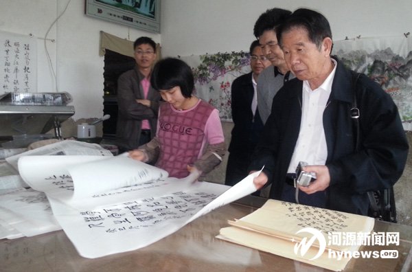 陳立明(右一)看望紫金縣九和鎮 “小書法家”曾玲玲。