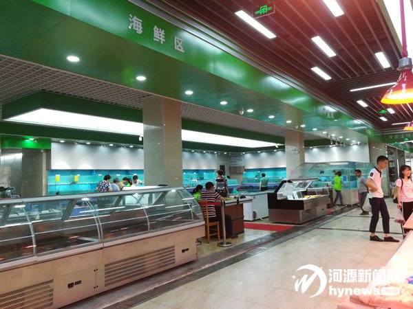 根據市民反映,記者來到位于源城區越王大道的雅居樂理想綜合市場查看情況。在現場,記者聽到了嘈雜的說話聲還有低沉持續的機器轟鳴聲,循著轟鳴聲,記者來到了市場左側邊上的幾個海鮮檔。據該海鮮檔口股東之一溫先生介紹,海鮮檔為了保持生鮮,必須24小時開著冷凍庫壓縮機,以維持水的恒溫。他說道:“之前雅居樂物業找我說過有居民反映噪音擾民的事,我當時就帶物業工作人員到冷凍庫壓縮主機處查看過,物業也認為聲音并不算大,之后就再沒有收到過投訴了。”溫先生表示他并不能確定這次居民反映的噪音問題是不是自己家壓縮機造成的。記者來到海鮮檔冷凍庫壓縮主機放置處,看到該主機就被放置在市場外墻距離地面約2 米高的一處凸面上,而雅居樂最近的一棟居民樓離此處直線距離約有10米。