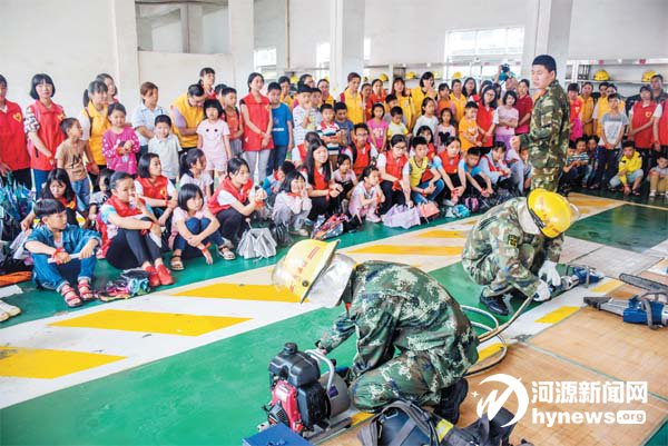 5 月21 日上午,和平縣公安消防 大隊(duì)聯(lián)合和平縣陽光公益服務(wù)中心、 和平縣99 義工聯(lián)合會(huì)等公益組織舉 辦了以“走進(jìn)軍營(yíng)與愛同行”為主題 的關(guān)愛留守兒童活動(dòng),50 多名留守兒 童走進(jìn)紅門學(xué)消防,零距離接觸和感 受消防警營(yíng)文化。