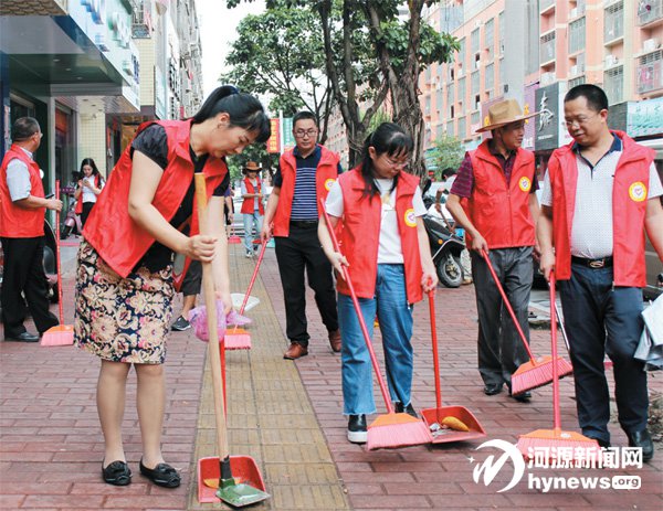 啟動儀式結束后,由市一中、源城區衛星小學師生、家長組成的志愿者隊伍分別到學校周邊街道開展志愿清掃活動。