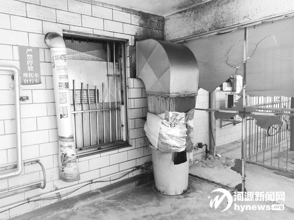 近日,記者來到振業(yè)馨園一區(qū),找到了市民所反映的“潮汕第一家砂鍋粥”宵夜檔,該店鋪處于未營業(yè)狀態(tài)。據(jù)振業(yè)馨園物管人員介紹,該店鋪要在入夜之后才開鋪。在物管人員帶領(lǐng)下,記者來到了該店鋪背后,即小區(qū)內(nèi)部。記者在現(xiàn)場看到,店鋪排煙管是金屬所制,從店鋪廚房內(nèi)伸出并彎曲著垂向小區(qū)地面,在排煙管與地面之間放了一個白色大垃圾桶。值得注意的是,該地面下并無任何管道,也就是說,經(jīng)由排煙管排出的油煙實質(zhì)上是直接排在了小區(qū)空氣中,而商鋪周邊墻壁已被油煙熏黃。