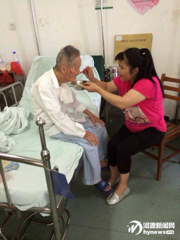 2013 年6 月,曹友蘭90 多歲的家公突發(fā)高燒、呼吸困難,被送往醫(yī)院急救,經(jīng)過(guò)十幾天的治療,家公的命雖然保了下來(lái),但是癱瘓?jiān)诖玻畈荒茏岳。曹友蘭主動(dòng)擔(dān)起照顧家公日常生活的重?fù)?dān),早上起床的時(shí)候,她便與丈夫一起幫家公洗漱;開(kāi)飯的時(shí)候,她盛好飯,一口口喂家公吃飯;夜深人靜的時(shí)候,她起床幫家公清洗尿盆;天氣晴朗的時(shí)候,她會(huì)推著輪椅,帶家公到外邊轉(zhuǎn)轉(zhuǎn)。為了讓家公更好地恢復(fù),曹友蘭堅(jiān)持學(xué)習(xí)醫(yī)護(hù)知識(shí),以便可以為家公解決平時(shí)出現(xiàn)的小問(wèn)題;堅(jiān)持學(xué)習(xí)按摩術(shù),有空就為家公按摩;堅(jiān)持學(xué)習(xí)科學(xué)飲食,為家公合理配餐。