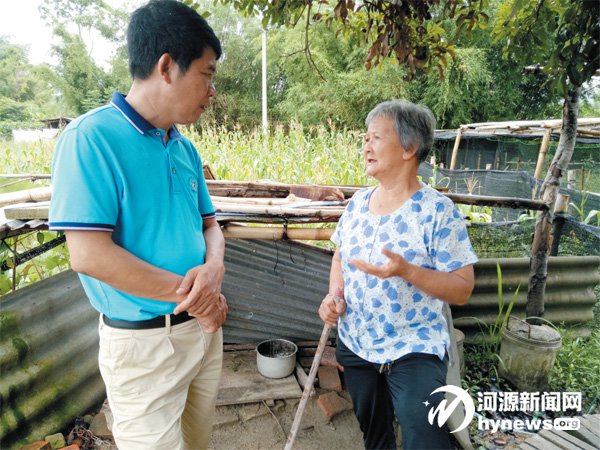 貧困戶黃健蓮(右)向當?shù)刂赂粠ь^人詢問致富脫貧項目。