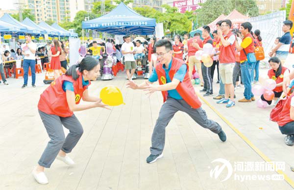 趣味競賽環(huán)節(jié),志愿者們愉快互動。本報記者 陳仕平 攝