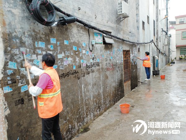 每天,城區內都有五六十名保潔員在專門清理牛皮癬,3 臺高壓清洗機在街頭強勢推進,網格化的管理使得市區牛皮癬呈現“只減不增”的良好態勢。源城區城管局通過“疏、堵、清”三結合方式,抓住源頭加強治理 “牛皮癬”,目前成效顯著,城市整體面貌有了較大改觀,環境衛生綜合檔次有了質的提升。