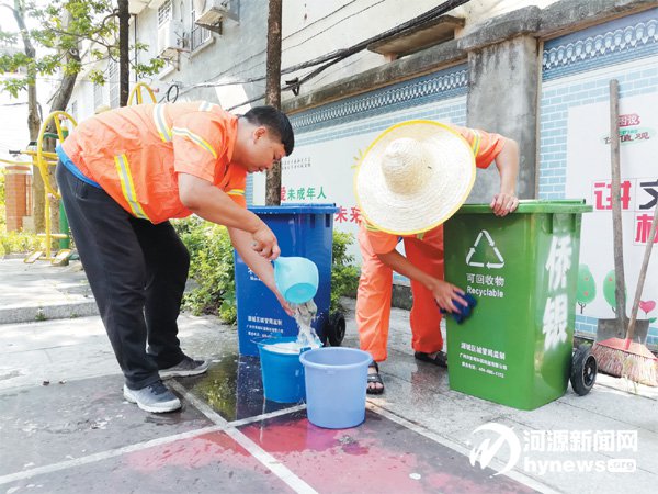 為了加強(qiáng)對(duì)新舊果皮箱、垃圾桶的管理,源城區(qū)城管局要求市區(qū)8 家環(huán)衛(wèi)保潔服務(wù)公司對(duì)垃圾桶、果皮箱、環(huán)衛(wèi)收集車等進(jìn)行清理保潔,并將源城區(qū)1500 多名環(huán)衛(wèi)工人分散在市區(qū)各處,人手配備毛巾,清洗果皮箱、垃圾桶,形成了“每日一抹”的保潔常態(tài)化工作機(jī)制,防止蚊蠅滋生,營造干凈整潔的生活環(huán)境。