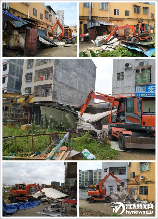 源西街道拆除違章搭建攤鋪。