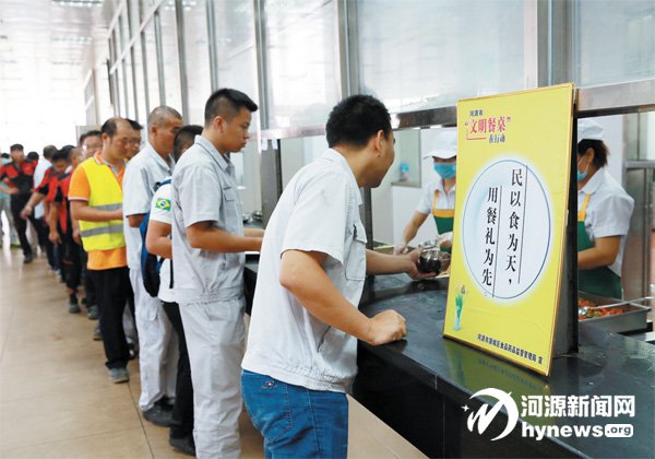 對于這樣的就餐紀律,員工李敏說:“我們員工吃飯都要排隊、要禮讓,吃飯不能浪費,食堂有序安靜,就餐的宣傳海報大家也看得到,自然要按照紀律執行,爭取人人做表率。”該公司食品安全管理員馮建愛告訴記者,自從食堂推行文明餐桌行動以來,食堂大廳均貼有溫馨提醒并播放宣傳片,不管是領導還是員工都能遵守紀律,節約糧食,飯后自覺清理桌面殘渣,公司員工在文明餐桌、光盤行動這方面執行得不錯。