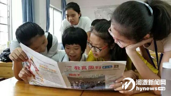 沒有約定、沒有彩排,當記者來到市二中時正是課間,在8 年級7 班,幾名學生圍著《河源晚報·教育周刊》爭相傳閱,看著、談著、讀著……