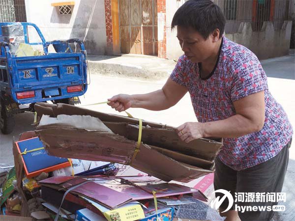 黃姨在回收廢紙。