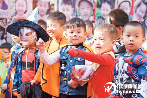 昨日上午,記者來到了位于市區(qū) 新風(fēng)路的博海世紀(jì)華府幼兒園,幼兒 園的操場、走廊和教室到處都布置著 與萬圣節(jié)有關(guān)的飾品,氛圍十分濃 厚。剛剛吃過早餐的孩子們,興奮 地在教室里相互展示著自己的奇裝 異服,等待著狂歡派對的開始。該 幼兒園的何園長告訴記者,幼兒園 為了這一次活動,提前一個星期就開 始準(zhǔn)備了。