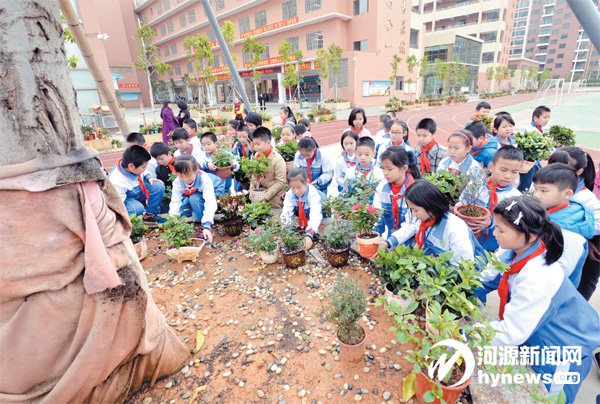 每位學生自帶一盆花,每個班級將所有花盆集在一起就是一個大花園,學校瞬間就變成花的海洋。
