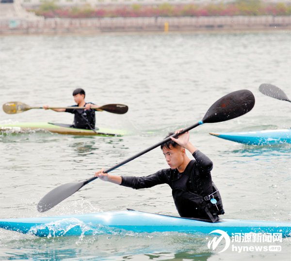 新豐江黃金水道上正在“玩”皮劃艇的人。據了解,他們是河源市水上運動管理中心賽艇、皮劃艇激流回旋運動員,正在備戰2018 年廣東省運會。記者獲悉,近期,他們逢周二、周四、周六都將在新豐江黃金水道訓練,感興趣的市民可以前來近距離觀摩。