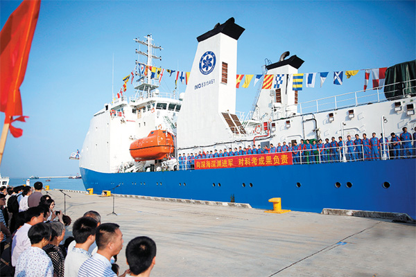 昨日上午8 時,海南三亞,伴隨著鮮花與掌聲,我國4500 米載人潛水器及萬米深潛作業的工作母船“探索一號”科考船緩緩駛入南海救撈三亞基地碼頭。