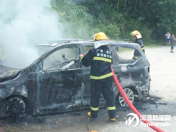 7 日12 時許,龍川消防中隊接到指揮調(diào)度稱:龍川縣上坪鎮(zhèn)金龍村一小車著火。接到警情后,麻布崗專職消防隊到達現(xiàn)場后發(fā)現(xiàn),一輛小汽車正在路邊猛烈燃燒,冒出滾滾濃煙。經(jīng)過 10 多分鐘的緊急撲救,明火被撲滅,沒有人員傷亡。據(jù)車主介紹,小車是在行駛過程中不慎撞上路邊的大樹后著火的。