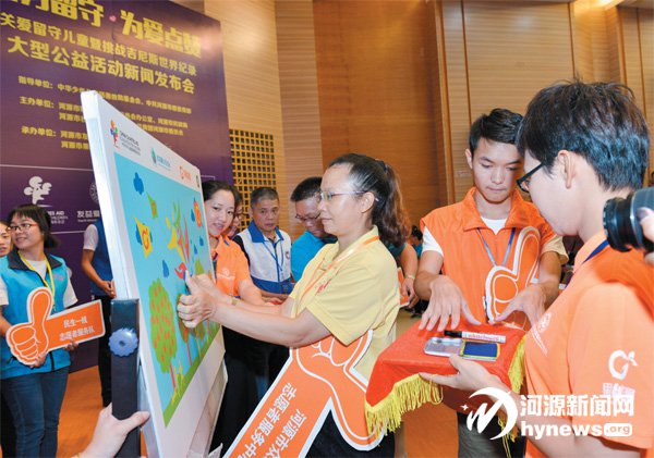 志愿者在啟動畫上按上自己的愛心手指印。昨日上午,“聚力留守為愛點贊”——關愛留守兒童暨挑戰吉尼斯世界紀錄大型公益活動啟動儀式新聞發布會在市區舉行。據透露,8月9日至23日,市友益愛心促進會將在河源、東莞、惠州、肇慶等城市聯動,進行募集愛心點贊公益行,并邀約愛心團體到河源實地走訪、關愛留守兒童;8月24、25日將組織市民、留守兒童、愛心企業、志愿者等一起共同完成888平方米的巨幅指紋繪畫,挑戰吉尼斯世界紀錄。