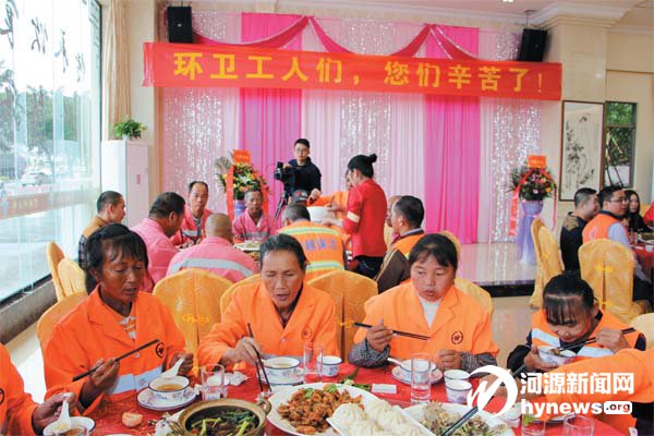 15 日,東源縣城寶樹 軒酒樓開業。與其他酒樓 開業搞隆重的慶典儀式不 一樣,這家酒樓開業時, 竟然專門請50 名環衛工 人吃飯。